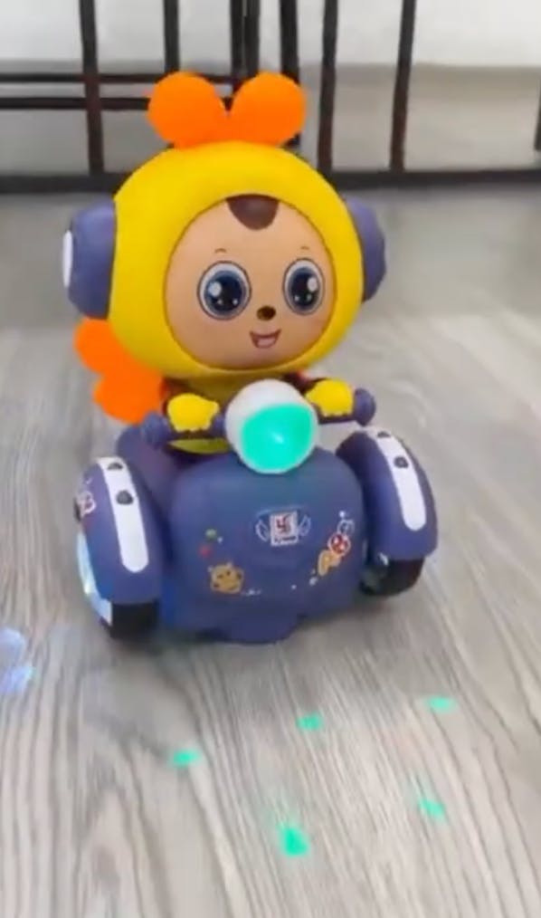 BeeBop features 360-degree rotating movement with colorful 5D lighting and playful music that instantly grabs a child’s attention. As it dances, spins, and changes direction when it bumps into obstacles, kids are encouraged to crawl, follow, and chase along. The face-changing design adds an extra layer of surprise, keeping playtime fresh and exciting. Its smooth omni-directional movement ensures continuous action without getting stuck.